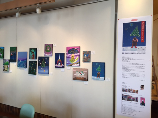 併設されたサロンでの展示となりますが、コーヒー、紅茶が無料で頂けますので、甘い美味しいスウィーツを頂きながら作品鑑賞もできますよ〜♪